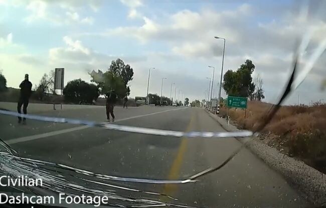 अगली फुटेज किसी कार में लगे डैशकैम से ली गई है. हमास का एक लड़ाका सड़क पर जा रही कार को हाथ के इशारे से रुकवाता है. कार के रुकने पर वहां कुछ हथियारबंद लड़ाके पहुंचते हैं और कार पर अंधाधुंध फायरिंग करने लगते हैं. कार चलाने वाला शख्स हड़बड़ाहट में कार की स्पीड तेज करता है. इस बीच लगातार फायरिंग हो रही है. इस बीच शख्स का कार से नियंत्रण हट जाता है और उसकी एक एसयूवी से टक्कर हो जाती है.