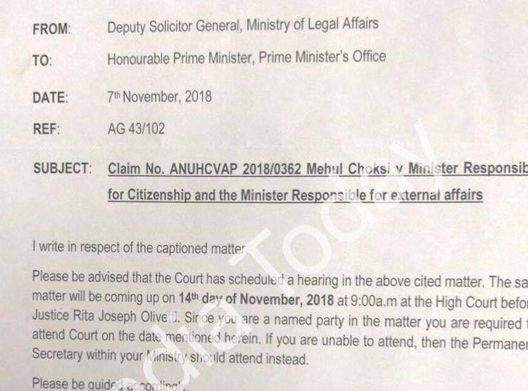 पंजाब नेशनल बैंक घोटाले में आरोपी मेहुल चोकसी ने एंटीगुआ और बारबुडा सरकार के खिलाफ मुकदमा किया है. चोकसी ने मुकदमे की सुनवाई में प्रधानमंत्री या उनके स्थायी सचिव को शामिल करने की गुहार लगाई है.