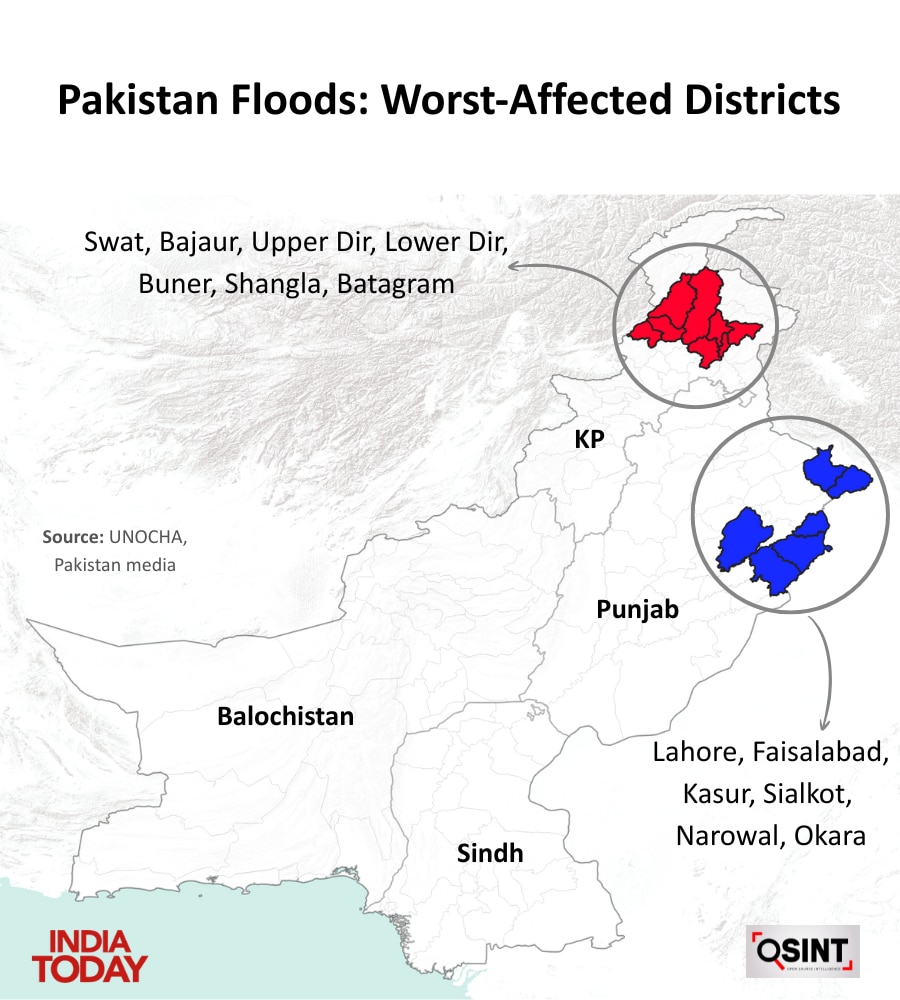 पाकिस्तान के चारों बड़े प्रांत - खैबर पख्तूनख्वा, पंजाब, सिंध और बलूचिस्तान - बाढ़ की चपेट में हैं. इनमें सबसे ज्यादा असर पख्तूनख्वा पर पड़ा, हालांकि हाल के दिनों में वहां स्थिति थोड़ी बेहतर हुई है. अब प्रकृति का प्रकोप पंजाब की ओर मुड़ा है, जिसे पाकिस्तान का सबसे अहम इलाका माना जाता है.