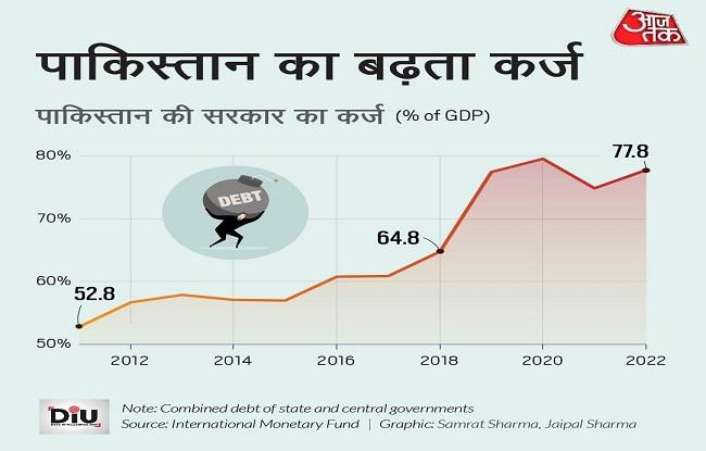 अंतराष्ट्रीय मुद्रा कोष के अनुसार, पाकिस्तान सरकार पर कर्ज भी लगातार बढ़ता जा रहा है. साल 2011 में पाकिस्तान सरकार का आम कर्जा जीडीपी का 52.8 फीसदी था, जो साल 2016 में 60.8 फीसदी पहुंच गया. और अब अनुमान है कि यह बढ़कर 77.8 फीसदी पहुंच गया होगा.