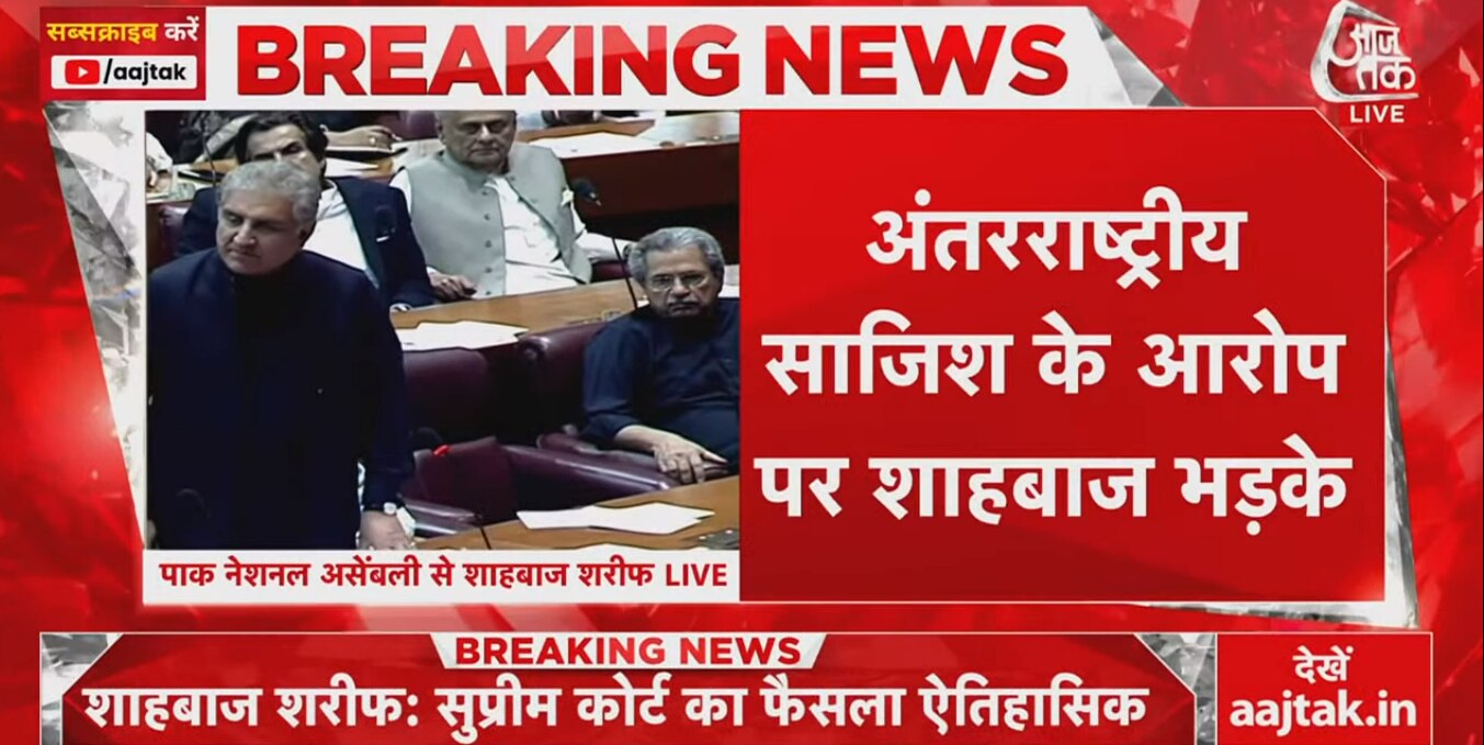 शाहबाज शरीफ ने कहा कि मैं विपक्ष को सलाम करता हूं. उन्होंने कहा कि पाकिस्तान के संविधान का उल्लंघन हुआ है. इस दौरान स्पीकर और शरीफ के बीच बहस हुई. स्पीकर ने की साजिश की बात तो भड़क गए शहबाज शरीफ, 'हम सबको नंगा करेंगे'.