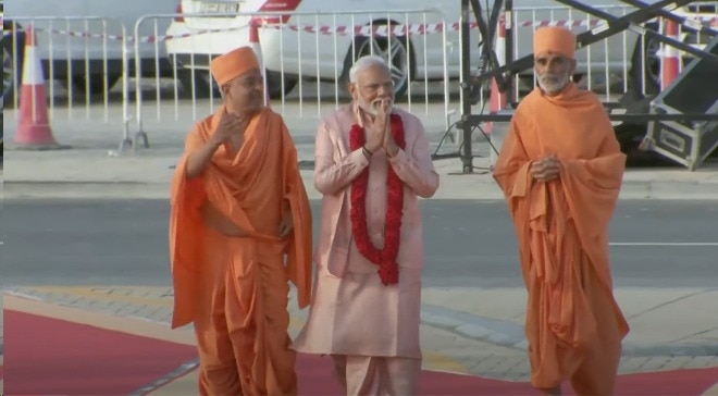 प्रधानमंत्री नरेंद्र मोदी अबू धाबी के BAPS हिंदू मंदिर पहुंच गए हैं. वह थोड़ी देर में मंदिर का उद्घाटन करेंगे. मंदिर पहुंचने पर महंत स्वामी महाराज ने पीएम मोदी का आदर-सत्कार किया.