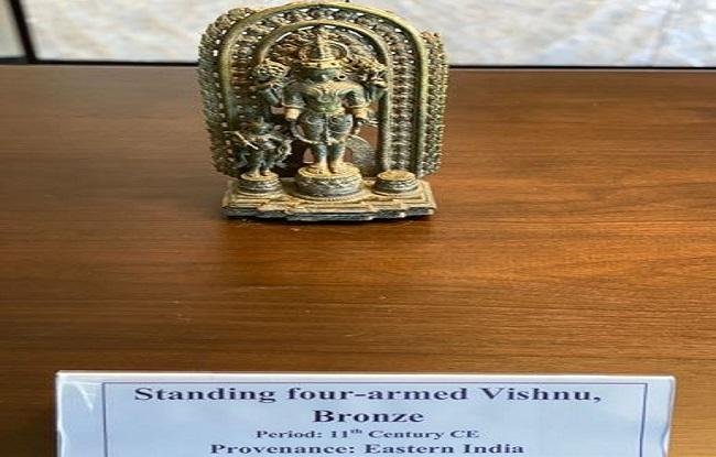 इन 157 कलाकृतियों व वस्तुओं में 10वीं शताब्दी की बलुआ पत्थर से तैयार की गई डेढ़ मीटर की नक्काशी से लेकर 12वीं शताब्दी की उत्कृष्ट कांसे की 8.5 सेंटीमीटर ऊंची नटराज की मूर्ति शामिल है. 157 कलाकृतियां और पुरावशेषों में से 71 कलाकृतियां सांस्कृतिक हैं, अन्य मूर्तियों में से हिंदू धर्म की 60, बौद्ध धर्म की 16 और जैन धर्म की 9 मूर्तियां हैं. इसके अलावा 18 वीं शताब्दी के एक म्यान सहित एक तलवार भी सौंपी गई है. इस शिलालेख में गुरु गोविंद सिंह का नाम फारसी में अंकित है.