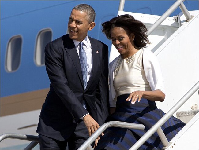 अमेरिका के राष्ट्रपति बराक ओबामा ने गुरुवार को अपनी पत्नी मिशेल ओबामा को शर्मिंदा होने से बचा लिया. उन्होंने मिशेल की हवा में उड़ती स्कर्ट को थाम लिया और फोटोग्राफर्स को ऐसी किसी भी तरह की फोटो खींचने का मौका नहीं दिया, जिससे मिशेल को शर्मिंदगी महसूस हो.