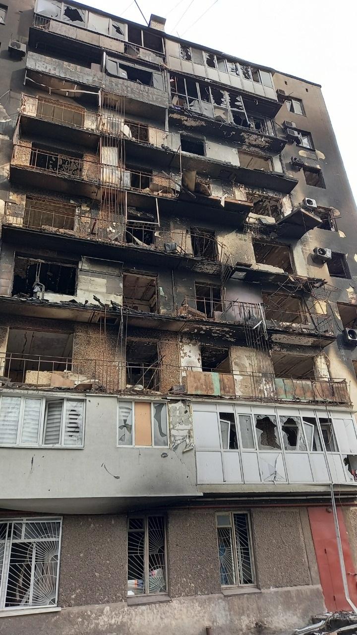 रूसी गोलाबारी में ध्वस्त मारियोपोल की इमारत