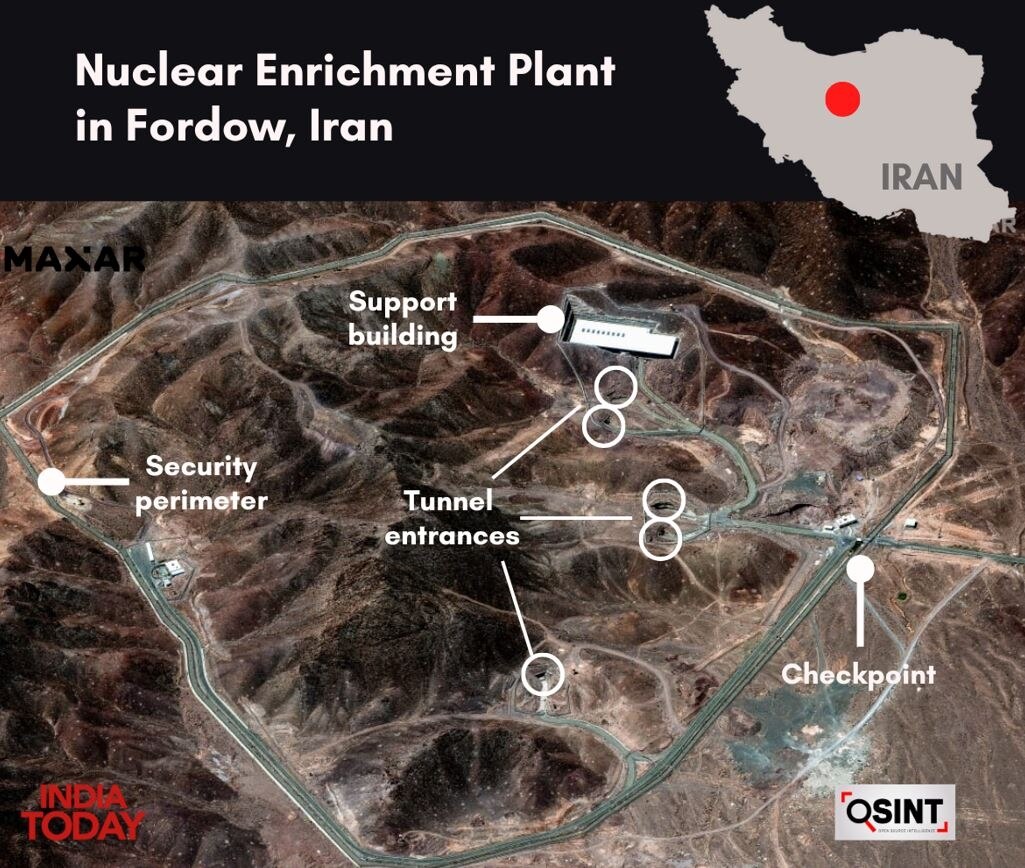 ईरान के तीनों परमाणु ठिकानों में राजधानी तेहरान से करीब 120 किमी साउथ-वेस्ट में स्थित फोर्डो यूरेनियम एनरिचमेंट सेंटर सबसे अहम परमाणु ठिकाना है, क्योंकि यह एक पहाड़ से 80-90 मीटर नीचे स्थित है.