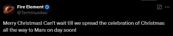 'Fire Element' नाम के एक्स हैंडल ने लिखा, "क्रिसमस की बधाई! हम क्रिसमस के जश्न को मंगल ग्रह तक फैलाने का बेसब्री से इंतजार कर रहे हैं!"