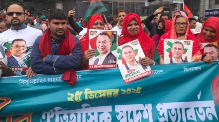 बांग्लादेश के स्थानीय अखबारों के मुताबिक, ढाका में कड़ाके की ठंड है, बावजूद इसके, लाखों की संख्या में लोग तारिक रहमान के स्वागत के लिए जमा हुए हैं. ढाका में रात से पार्टी नेताओं, कार्यकर्ताओं और समर्थकों की भीड़ जुटनी शुरू हो गई थी. बहुत से लोग स्वेच्छा से कंबल, पानी, चाय आदि का वितरण कर रहे थे. सुबह होने से पहले ही ढाका के पुर्बाचल इलाके की पूरी 300 फुट लंबी सड़क तारिक रहमान के स्वागत के लिए उमड़े लोगों से भर गई.