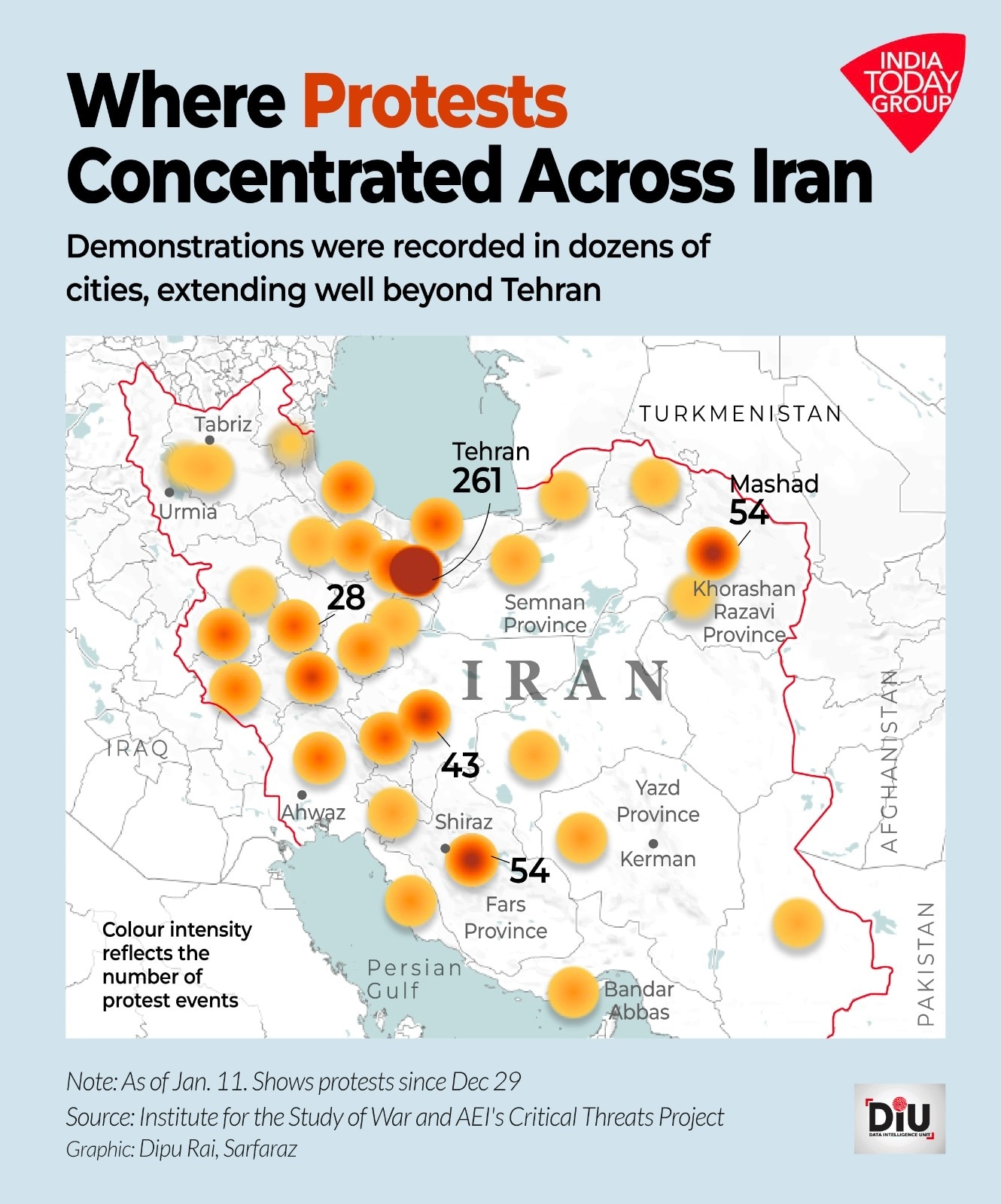 दुनिया भर के नेता इस बात को लेकर चिंतित हैं कि अगर ईरान की मौजूदा सरकार गिरती है, तो इसका असर वैश्विक राजनीति और ऊर्जा बाजारों पर पड़ेगा. व्हाइट हाउस के एक अधिकारी के मुताबिक, अमेरिकी सैन्य कमांडरों ने राष्ट्रपति डोनाल्ड ट्रंप को सैन्य कार्रवाई के विकल्पों पर ब्रीफ किया है. इसका कच्चे तेल की कीमतों पर भी असर दिखा है. ब्रेंट क्रूड 5 फीसदी से ज्यादा उछलकर 63 डॉलर प्रति बैरल पहुंच गया. हालांकि अभी यह साफ नहीं है कि ईरान का मुख्य तेल उत्पादक इलाका खुजेस्तान सीधे तौर पर प्रभावित हुआ है या नहीं.