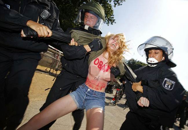 दरअसल, FEMEN कार्यकर्ताओं ने बुधवार सुबह अमेरिकी राष्ट्रपति बराक ओबामा के भाषण से पहले जर्मनी की राजधानी बर्लिन में टॉपलेस होकर प्रदर्शन किया. गौरतलब है कि FEMEN यूक्रेन का एक महिलावादी ग्रुप है, जो अपने टॉपलेस प्रदर्शनों के लिए जाना जाता है.