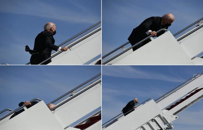 WATCH: Biden falls three times trying to climb the stairs to board Air Force One pic.twitter.com/IfDUjLPQB4