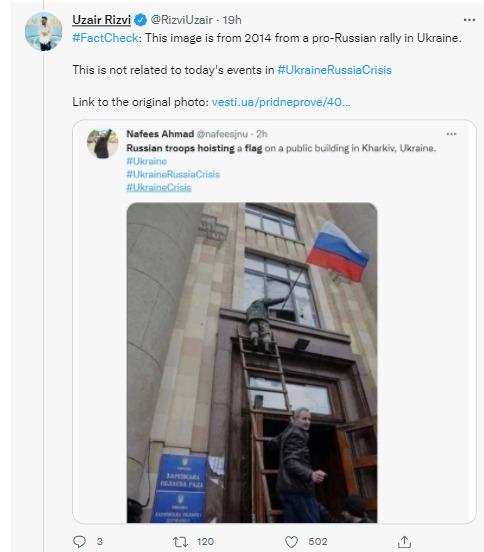 हालांकि इस फोटो का कैप्शन तो सही था लेकिन, चूंकि रूस का झंडा यूक्रेन के खारकिव शहर में ही लगाया गया था. लेकिन जब इस फोटो की रिवर्स इमेज सर्च टूल से जांच की गई तो पता चला ये घटना 2014 की है.