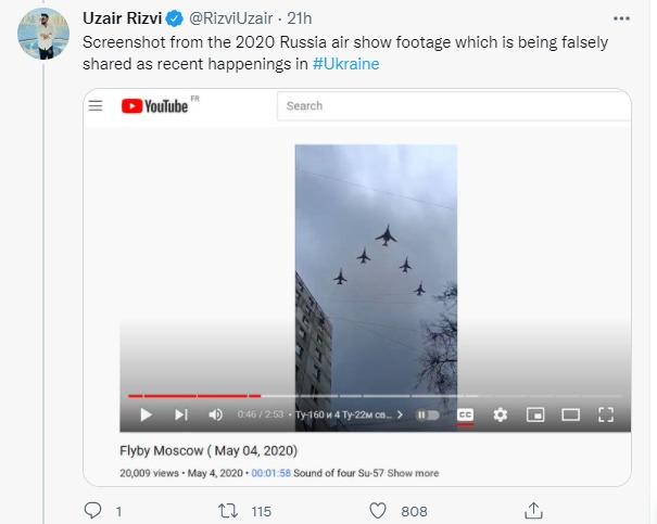 जैसे ही यूक्रेन और रूस में तनाव की खबरें सामने आईं, इसी बीच एक वीडियो यह कहकर वायरल किया गया कि जेट फाइटर प्लेन ने यूक्रेन पर हमला कर दिया है. हालांकि बाद में ये क्लिप डिलीट कर दी गई. जब इस क्लिप को गौर से देखा गया तो जो एयरक्राफ्ट था वह अमेरिका में बना F-16 निकला.
